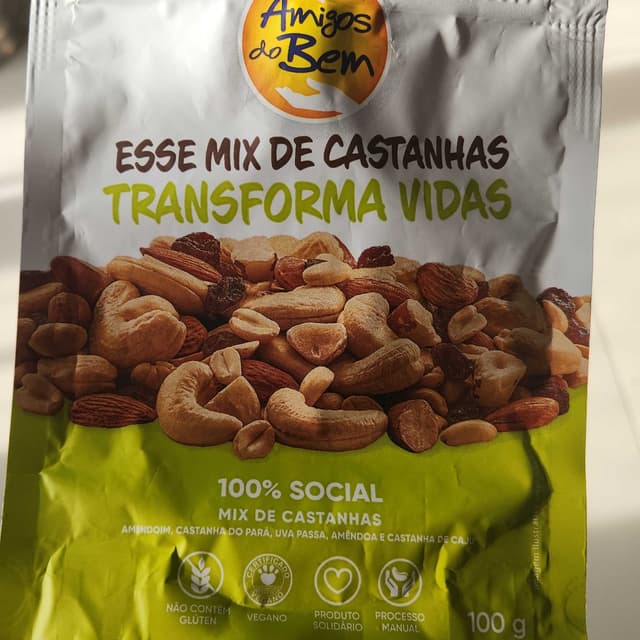 Super prático pois o pacote tem fechadura estilo zip. Vem com um mix bem variado, os mais predominantes são amendoim e uva passas
