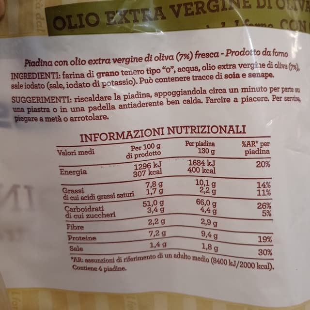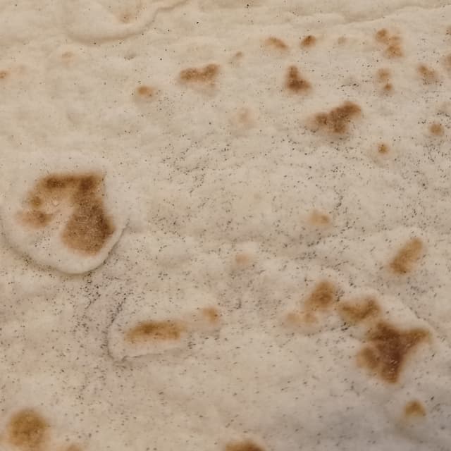🇮🇹 Di solito compro un'altra marca di piadina e questa non mi è piaciuta tanto, mi è sembrata un po' grossa, intendo l'impasto, ci sono altre più sottili che preferisco, anche come sapore c'è di meglio. Poi, mentre la scaldavo in padella, ho visto dei piccoli puntini neri e ho pensato di averla bruciata io, ma dopo, ne ho preso un'altra e aveva già questi puntini (ho messo la foto). Qualcuno che se ne intende di piadine mi può dire se è normale? Cosa sono questi puntini? Io ho pensato si fossero bruciate quando le hanno cucinate prima di impacchettarle.