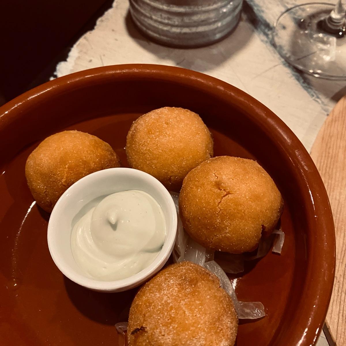 Polpette di cavolfiore con maionese al lime, le polpette erano molto buone anche se non erano molto compatte e si sfaldavano, la maionese era strepitosa, davvero buonissima.
