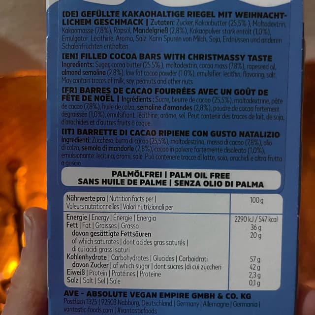 Barrette al cioccolato ripiene di gusto natalizio molto gustose, leggermente troppo dolci ma a Natale si può fare! Sono durate davvero poco 🤣 prese sempre online su velivery #velivery #holly #vegancioccolata