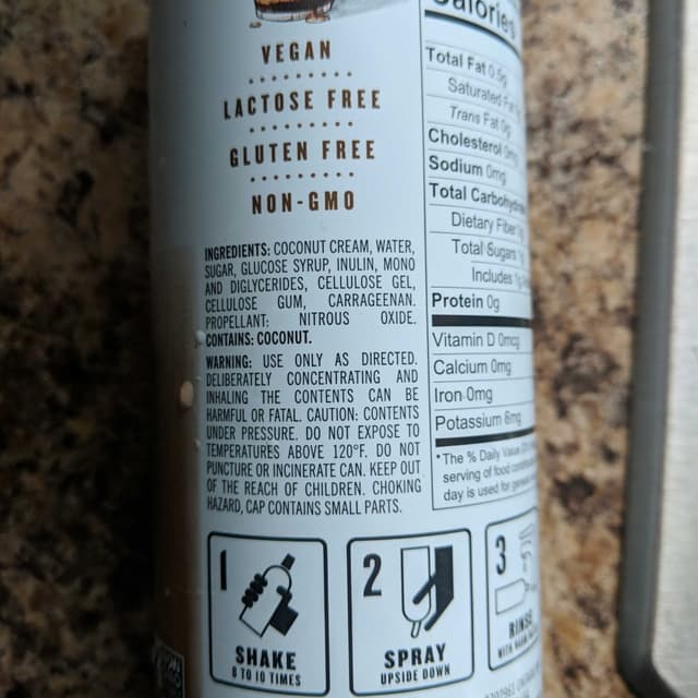 This is a convenient way to top your hot chocolate or ice cream with a little bit of whipped topping. The ingredients are not great. This is definitely not a good for you food.