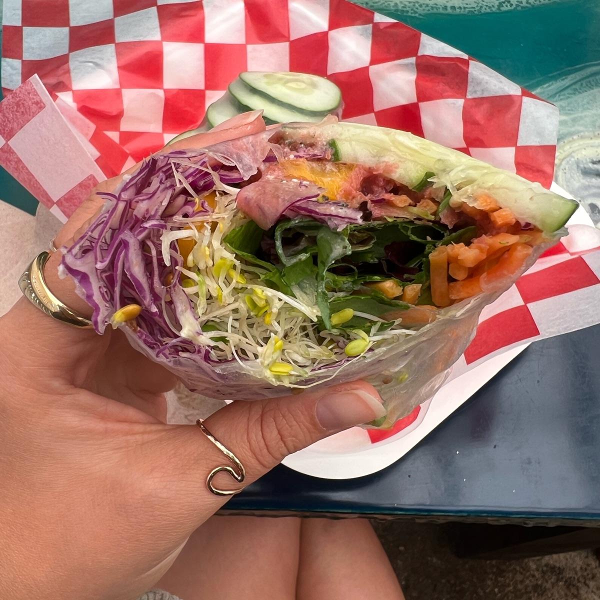 if you know me, you know i’m OBSESSED with spring rolls/ rice paper rolls/ summer rolls… whatever you call them haha und these definitely dis NOT disappoint! you get 2 huge rolls and a side of dressing/ sauce which also tastes amazing BUT i have to admit i prefer a pb-sauce over the one they serve with their rolls!