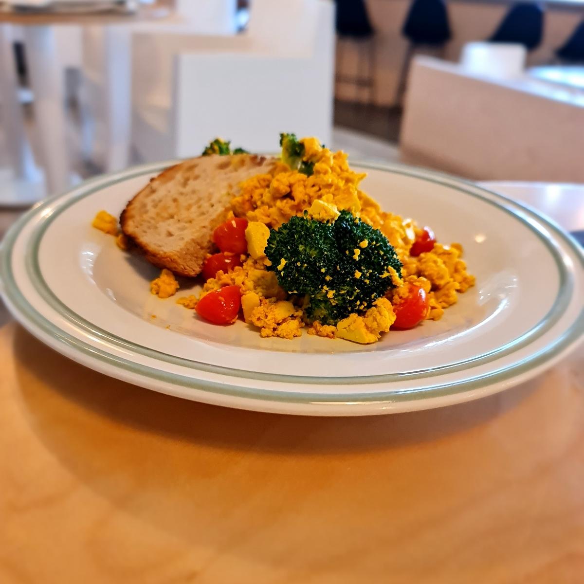 Under $13 for 2 slices of #sourdough toast(👍), tough #broccoli florets(👎) and #tofumeric. Chef went overboard with the spice which is about the only memorable thing I tasted. Recommended to work it last 🙊