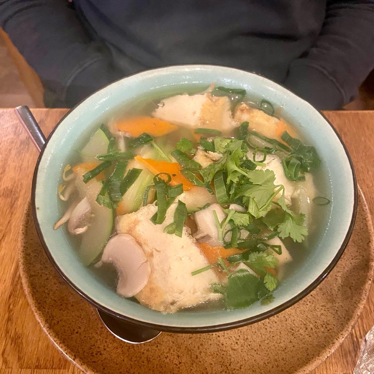 This super hearty Pho has rice noodles with veg broth, tofu, seitan and herbs. It was perfect on a chilly winter’s night 🥶🙌 just what I felt like!