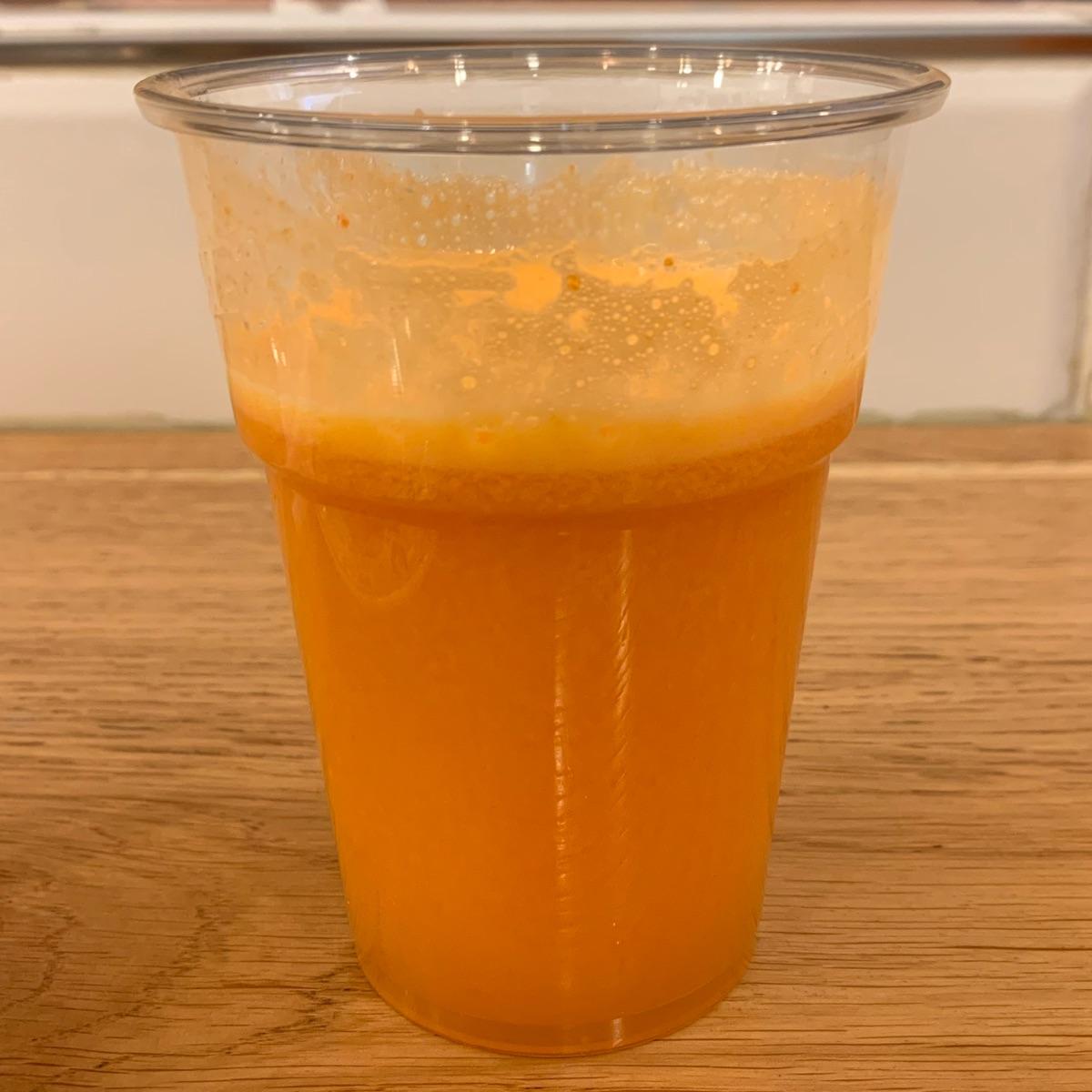 il colore in foto non rende, era ancora più vivo.. bellissimo!! (i bicchieri sono organici) davvero buono e ricaricante!!