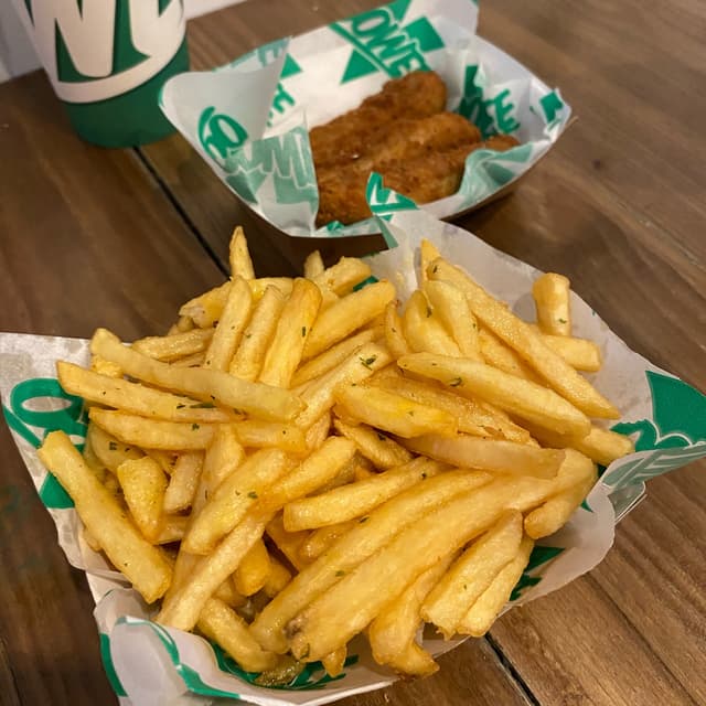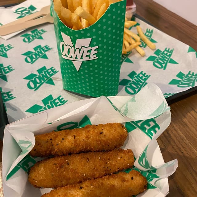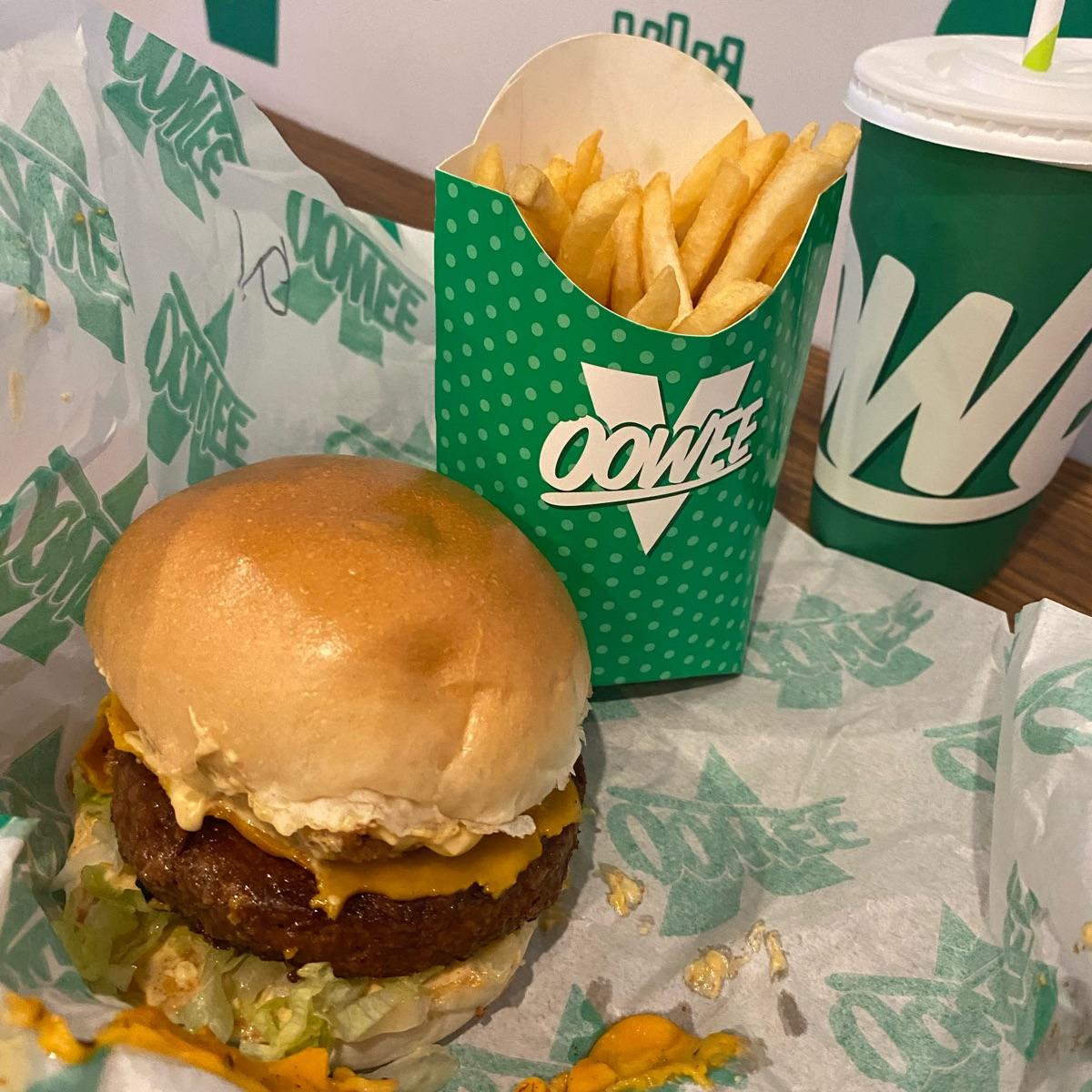 It was amazing as a vegan to look at a fast food menu and be spoilt for choice. The Big Oovee was a top selection - I would recommend. So tasty. A beautiful fresh, soft white fluffy bun, a chunky vegan burger. American cheese, hash brown, crispy fried onions, gherkins and lettuce, dirty sauce. As part of the meal £9.50, I got a soft drink and fries. Fries were cooked beautifully. We got chick’n tenders and garlic butter fries on the side. Chick’n tenders were excellent - great meaty texture, firm with crispy coating - we chose a baconaise dip which was also a winner - creamy and without the smoky aftertaste that I associate with bacon crisps. If you’re visiting Bristol then pop in! (No toilets in the restaurant though 😩). Packaging is sorted and recycled by their waste management company. #recyclable #veganfastfood #veganburgers #veganchickn #veganinbristol