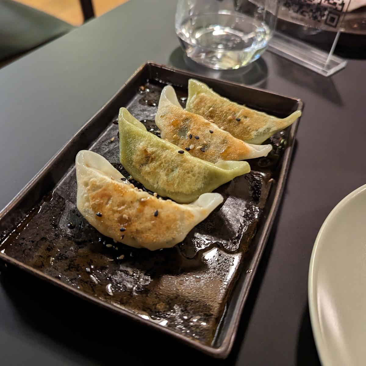 Il piatto è composto da 4 gyoza, di due tipi diversi: