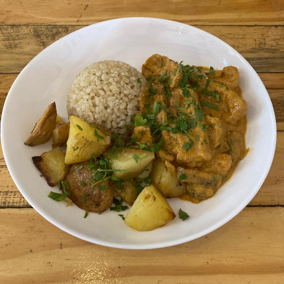 Tofu de ótima qualidade , tempero do molho muito saboroso . As batatas rústicas dão um toque especial no ao prato . Recomendo ! @ranchodosgnomos #ranchodosgnomos