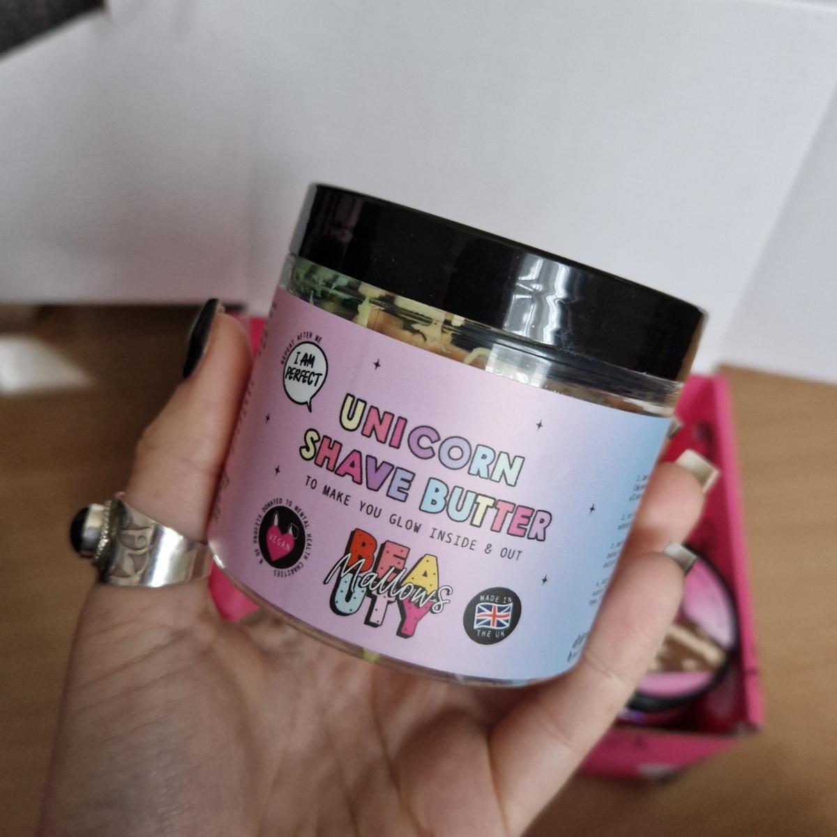 The texture is quite dense and creamy. It forms a thick lather when applied to wet skin, and it definitely lives up to the hype! I have never had a product give such a close shave and leave my skin feeling so smooth, (yes it does literally leave your skin dolphin smooth) and ingrown hairs are no longer an issue for me. I honestly can not and will not shave without it now. It also smells absolutely incredible, sort of like candy floss or generally something sweet. It's £13.95 and a little does go a long way! 🦄🌈🪒