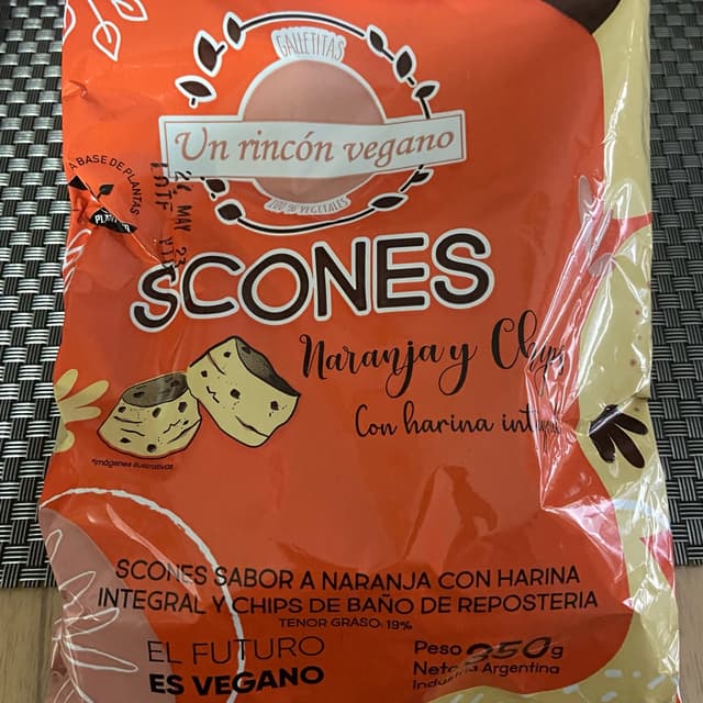 Scones de naranja y chips de choco de Un rincón vegano. Hasta ahora creo firmemente que es lo más rico que tiene la marca. Las tenes que probar si o si. 10/10.