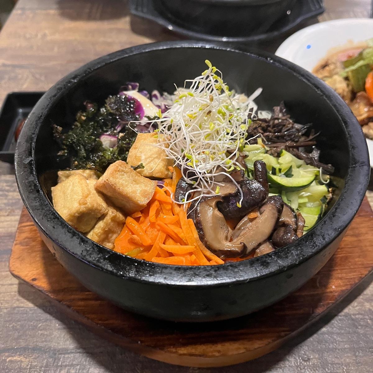 Love when the rice at the base of the hot stone bowl becomes crispy 🤭 needs more sauce imo, so just ask the friendly staff there and they’ll help you w that!