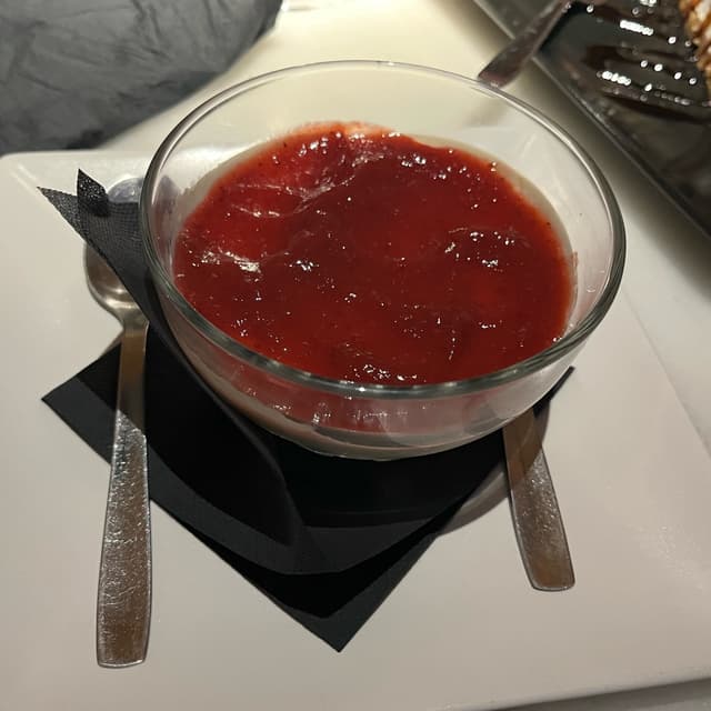 “Deliciosa versión vegana de este clásico postre italiano, en el que su cremosidad y la frescura de la fruta natural se aúnan.” Esta es la descripción de su carta, y poco más que añadir. Es una maravilla, riquísimo, no me cansaría nunca de comerlo.