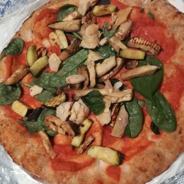 Che sorpresa trovare carciofini e spinacino su una pizza surgelata! Rendono la pizza gustosa e originale, anche se lo spinacino in cottura si asciuga molto.