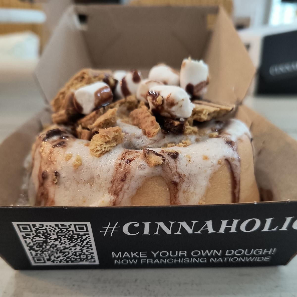 Yes, there is a cinnamon roll under all of the S'mores fixings. Marshmallows, graham cracker cookies and chocolate sauce smothering the usual pastry and cream cheese frosting.