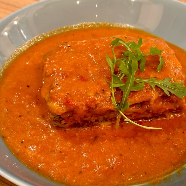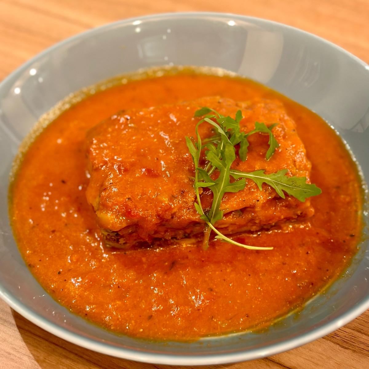 This is a really good vegan lasagne! Generous with the tomato sauce and it does taste cheesy.