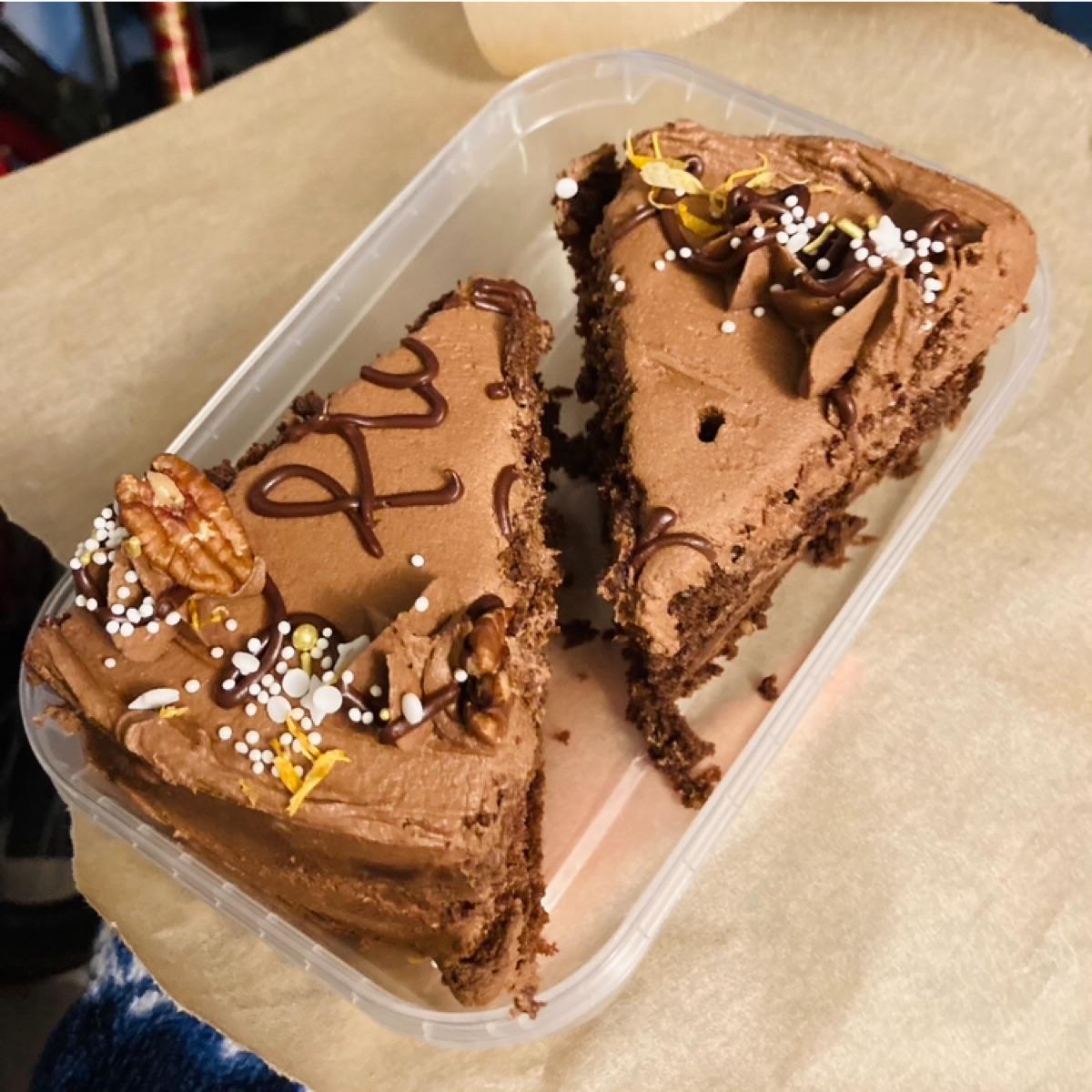 This was a personalised chocolatey cake made for a friend, and it was maybe the best chocolate sponge cake I’ve ever tried! Somehow really light / fluffy and really rich / moist at the same time - with such tasty icing and lovely decorations. Top tier cake #bakery #chocolate #cake #vegancake #chocolatecake