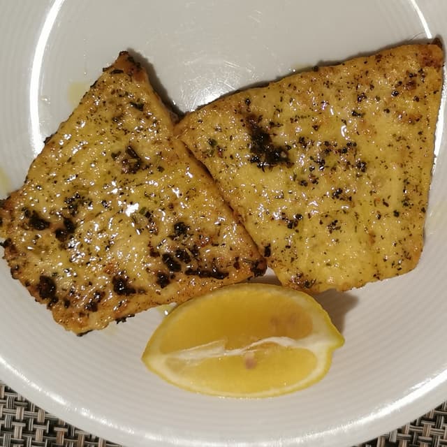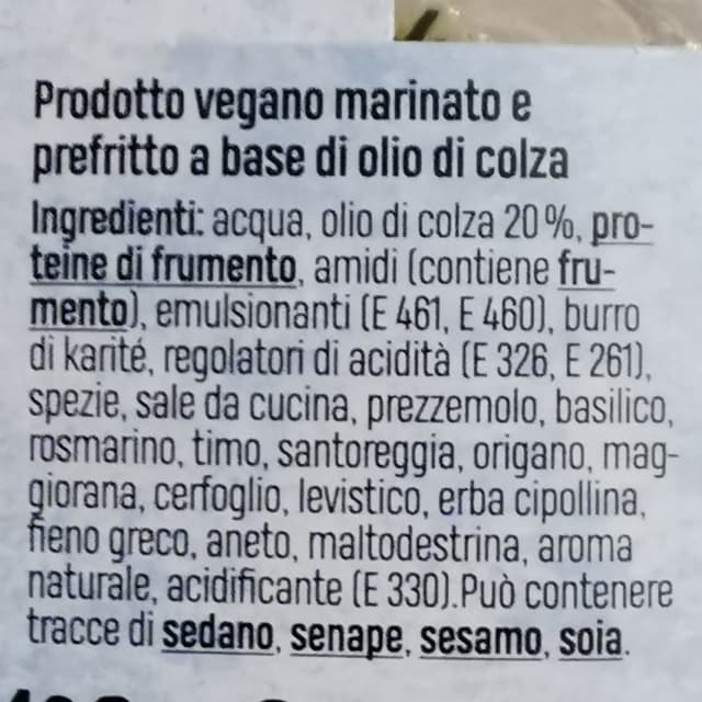 Un altro prodotto Yolo che mi è piaciuto molto ma che non so se ricompreró. Quando l'ho preso non ho guardato molto gli ingredienti, una volta a casa e letti devo dire che non sono il massimo, c'è scritto: a base di olio di colza. Infatti ne contiene il 20%. Poi proteine del frumento, amido e burro di karite. Insomma non proprio salutari. Però sono proprio buoni, la consistenza ricorda quella dei tranci di palombo, il sapore no, sono delicati, con una punta di dolce, non speziati. Io ci ho spruzzato del limone e devo dire che stava molto bene, mi ricordavano delle scaloppine. Le erbette della marinatura cuocendo si bruciano un po' ma non sono fastidiose. Scaldandoli rilasciano tanto olio quindi non ne aggiungerei in padella. La dose è di 80g a testa, un filetto, io li ho mangiati entrambi ma in effetti riempiono abbastanza. Il dilemma è: gusto o ingredienti? Magari una volta ogni tanto si può fare. Peccato per la vaschetta in plastica 😞. Il costo, come per tutti i prodotti molto processati, è alto:4,95 CHF preso alla Coop di Mendrisio.