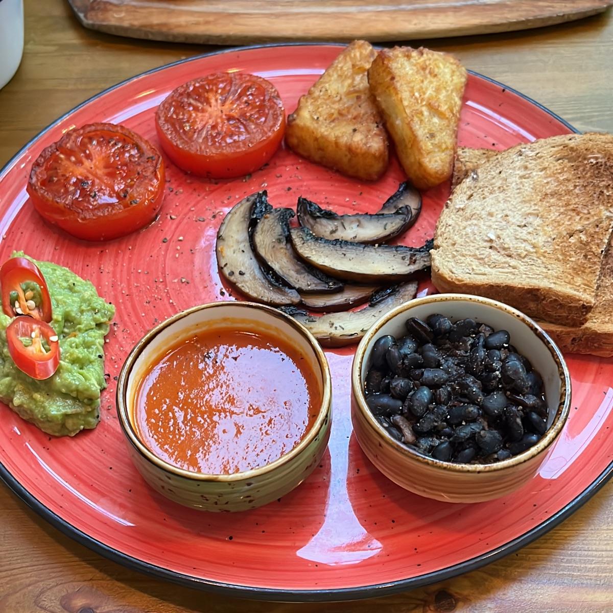The vegan breakfast was delicious with a variety of plant based foods. Great if you’re looking for whole foods, rather than vegan sausages and bacon. It was definitely presented on too big of a plate, so it looked quite sparse. But when it came to eating it, it did actually fill me up. So maybe needs to come on a smaller plate, or have some spinach or something to take up some more room.