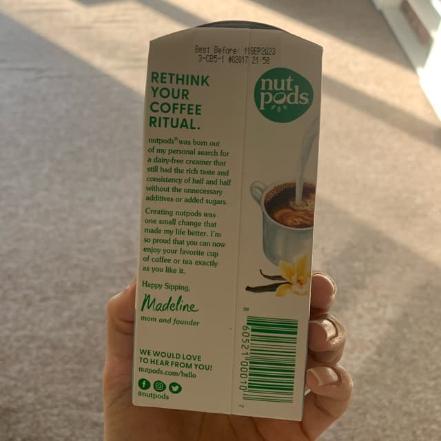 This is my favortie coffee creamer ever!! No added sugars & it tastes amazing. I would highly recommend. I use it every day. Worth its price too cuz it lasts for so long! This little thing lasted me over a month! 🤍🤍