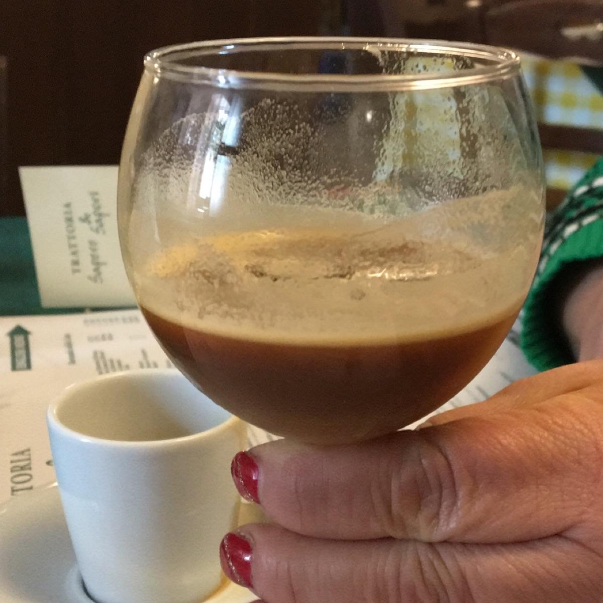 Caffè servito freddo e arricchito con latte di mandorla per addolcirlo. Non conoscevo questa bevanda tradizionale della zona e naturalmente vegana. Una piacevole alternativa al “solito” latte di soia nei bar.