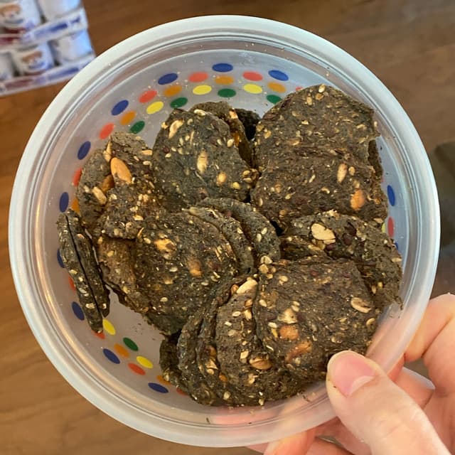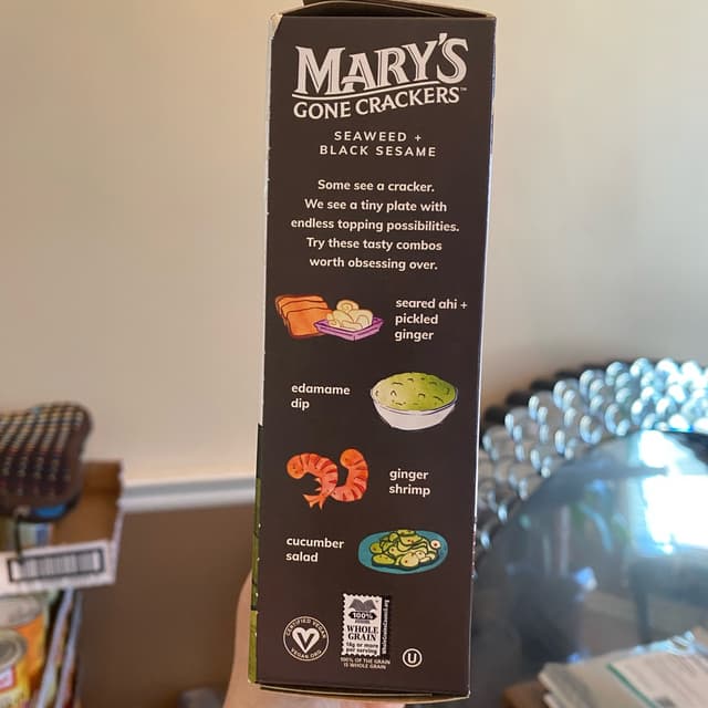 This brand makes my favorite #glutenfree crackers. Short list of ingredients makes me feel better about eating a packaged product. These particular crackers don’t necessarily smell or taste like seaweed, but they do have a different flavor than the other super seed flavors. I can’t pin down the difference though. Their dark color is very different and would be beautiful on a platter. I love seeing all the seeds in these crackers. Great texture! There is a very slight heat to these when you eat them on their own. Just a lil bit of cayenne. These are fantastic!