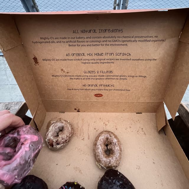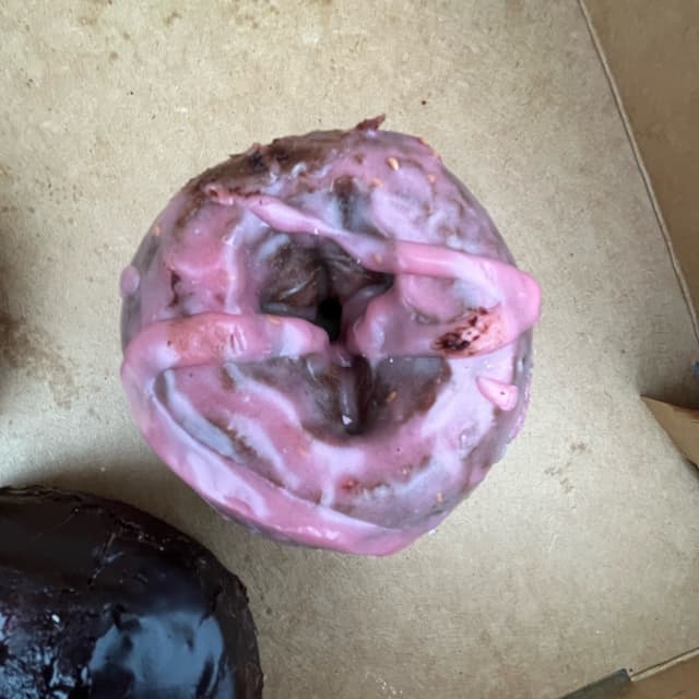 Bbbomb. I recommend this #raspberryandchocolate #cake #donuts It won’t let your expectations down and I’d get again for about $3. #vegandonuts and the #birdsofabillion sound views made my day. It was an all soft and moist chocolate cake donut and with raspberry frosting. 😋