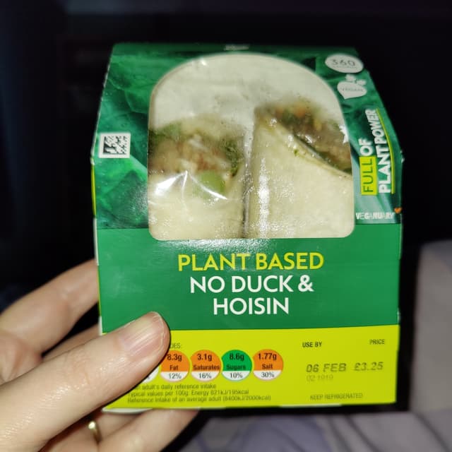 The Vegan No Duck & Hoisin Wrap is a plant-based meal option that is both tasty and satisfying. Made with soy pieces and packed full of crunchy veggies like cucumber, lettuce, and spring onion, this wrap is perfect for on-the-go snacking or as part of a balanced lunch. The hoisin sauce adds a delightful tangy flavor that complements the crispy texture of the wrap, making it a must-try for anyone looking for a quick and easy meal that's both healthy and delicious. Reviews rave about the perfect blend of taste and texture that leaves you craving more.