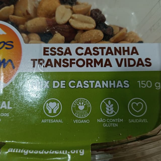 Mix de castanhas produzidas artesanalmente e distribuidas pelos Amigos do Bem, com certificado #vegan , #semgluten , deliciosas😋✨, e o mais importante, são 100% sociais, pois toda a renda obtida com as vendas é revertida aos projetos no sertão brasileiro.