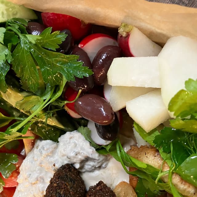 But the falafel is really good. And I like the crunchy vegetables.