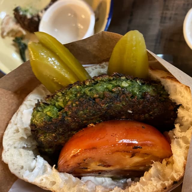 The falafel is nicely done and the taste blend in perfectly with the pita