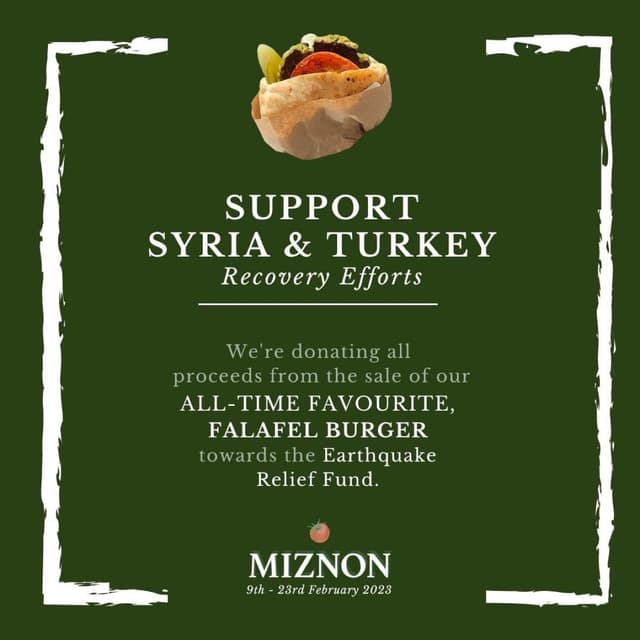 For this period, they will donate 100% of their proceeds of this burger to Turkey and Syria rebuilding find