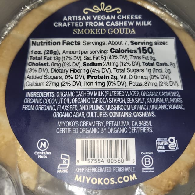 Some of the best vegan cheese I have had. The texture is lovely; firm but spreadable. I like the smokey flavor.