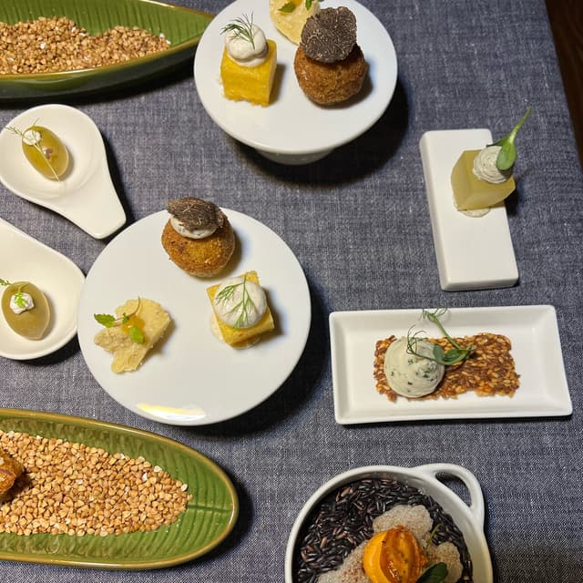Antipasto misto con molti assaggi, tra i più buoni a mio parere l’arancino con il tartufo (divino!!!) e la polentina. #rifugiomiletta