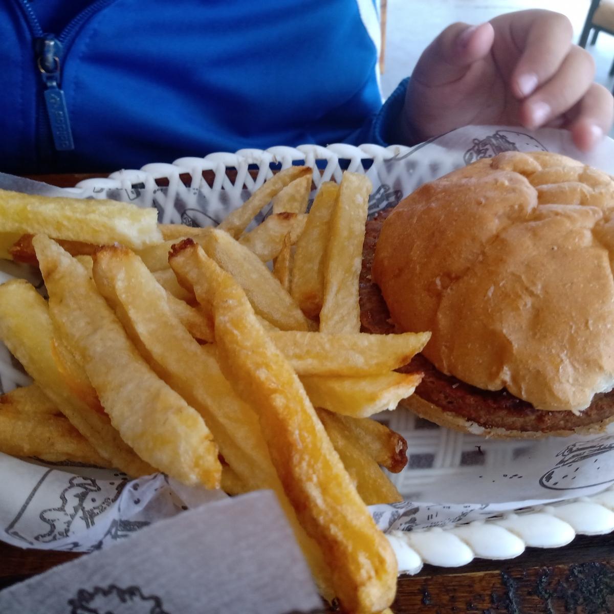 Hamburguesa Notco , pero mí nene no le agrega nada y queda seca 🤷🏻♀️ pero así le gusta jajaja. Viene con papas y salió $1600. Feb 2023