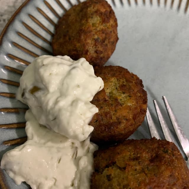 I love my air fryer.. and I loved these falafels heated in my air fryer.. it only took a few minutes and made a nice crispy outside.. perfect textured inside.