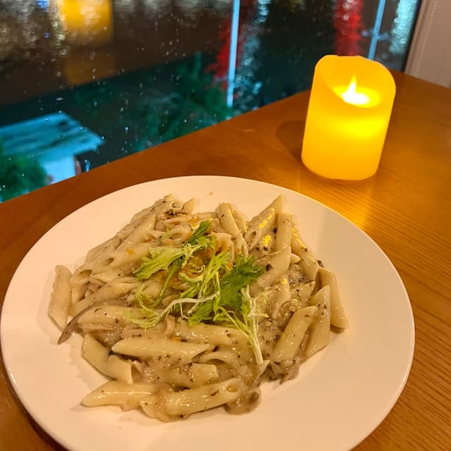 Creamy pasta. The truffle mushroom sauce was good. Topped with rocket leaves. Wished they gave more mushrooms in this dish.