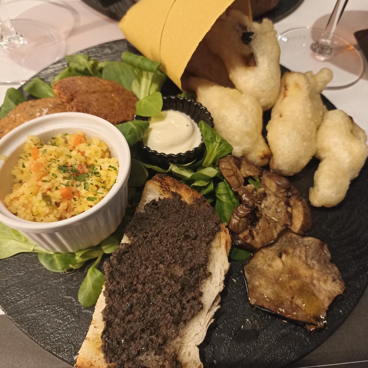 Entrata per caso e uscita più che soddisfatta! Un buon aperitivo vegan con cous cous di verdure, melanzane grigliate, falafel e mayo vegan, bruschetta con patè di olive e verdure pastellate. Tutto davvero ottimo e fresco!