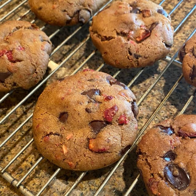 Made some strawberry chocolate cookies for Valentine’s Day. I crushed/chopped up the strawberries into smaller pieces and mixed in with the chocolate chips. I didn’t use a recipe and kind of winged it so I may change up some ratios if I make these again in the future but they still came out pretty tasty.