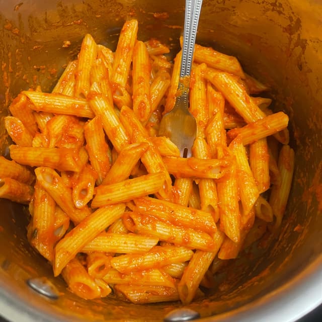 I stirred some sauce into my cooked pasta to absorb into the noodles a bit and then topped with more sauce when I plated. For me, it needed a little extra kick so I added some crushed red pepper. It was a good value at Costco and I would buy it there again.