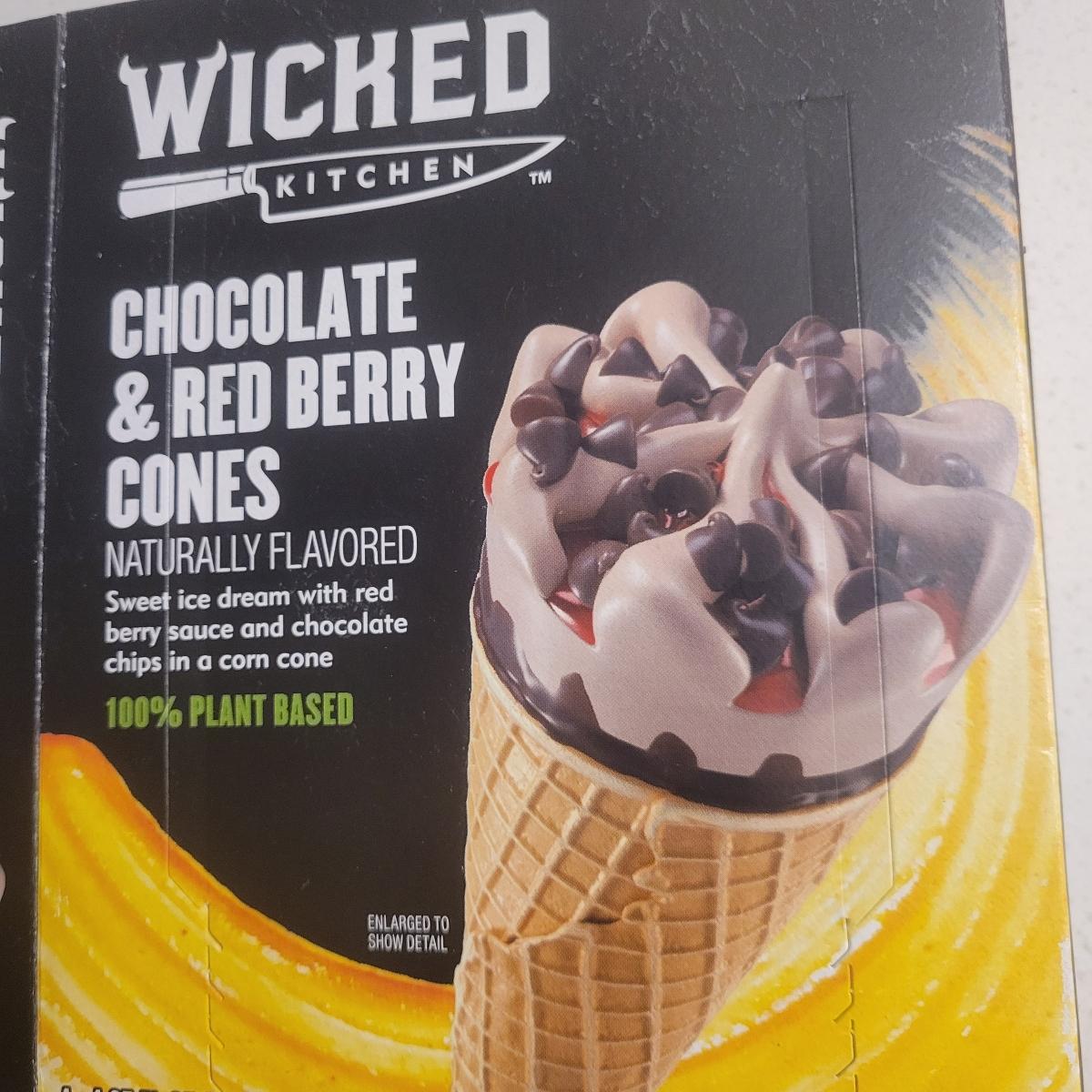 The ice cream has a soft serve like texture and extremely light chocolate flavor. Most of the red berry flavor is in the dollops of syrup om the top of the cone, I wouldn't consider the rest fruity. The cone itself is soft which those expecting the typical crunch of a waffle cone may dislike. The chewy cake-like texture of the cone did grow on me.