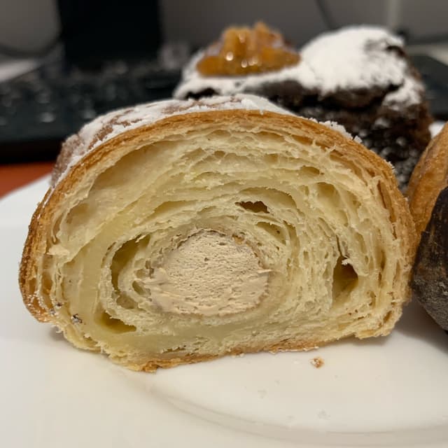 Se veía tentador con ese pistacho por afuera... pero cuando lo corté y vi ese poco relleno de color pálido 😂 es lo que hay. Igual estuvo bien. $380 Feb-23.