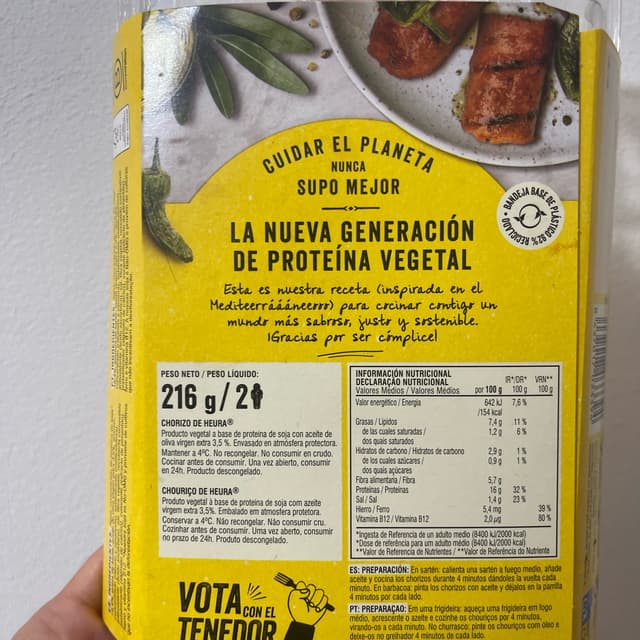 Prodotto vegetale dal sapore molto delicato pronto in pochi minuti, molto buoni ed originali. Ottima consistenza. Base soia con aggiunta b12 e ferro. Consigliati ☺️ #veganchorizo #heura #heurafoods #vegan #goveganfortheanimals