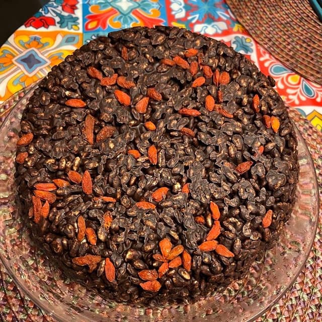 Molto buona anche se sono abituata a un 75%, oggi ho voluto fare questa torta con cioccolato fuso e semplicemente riso e farro mescolati.