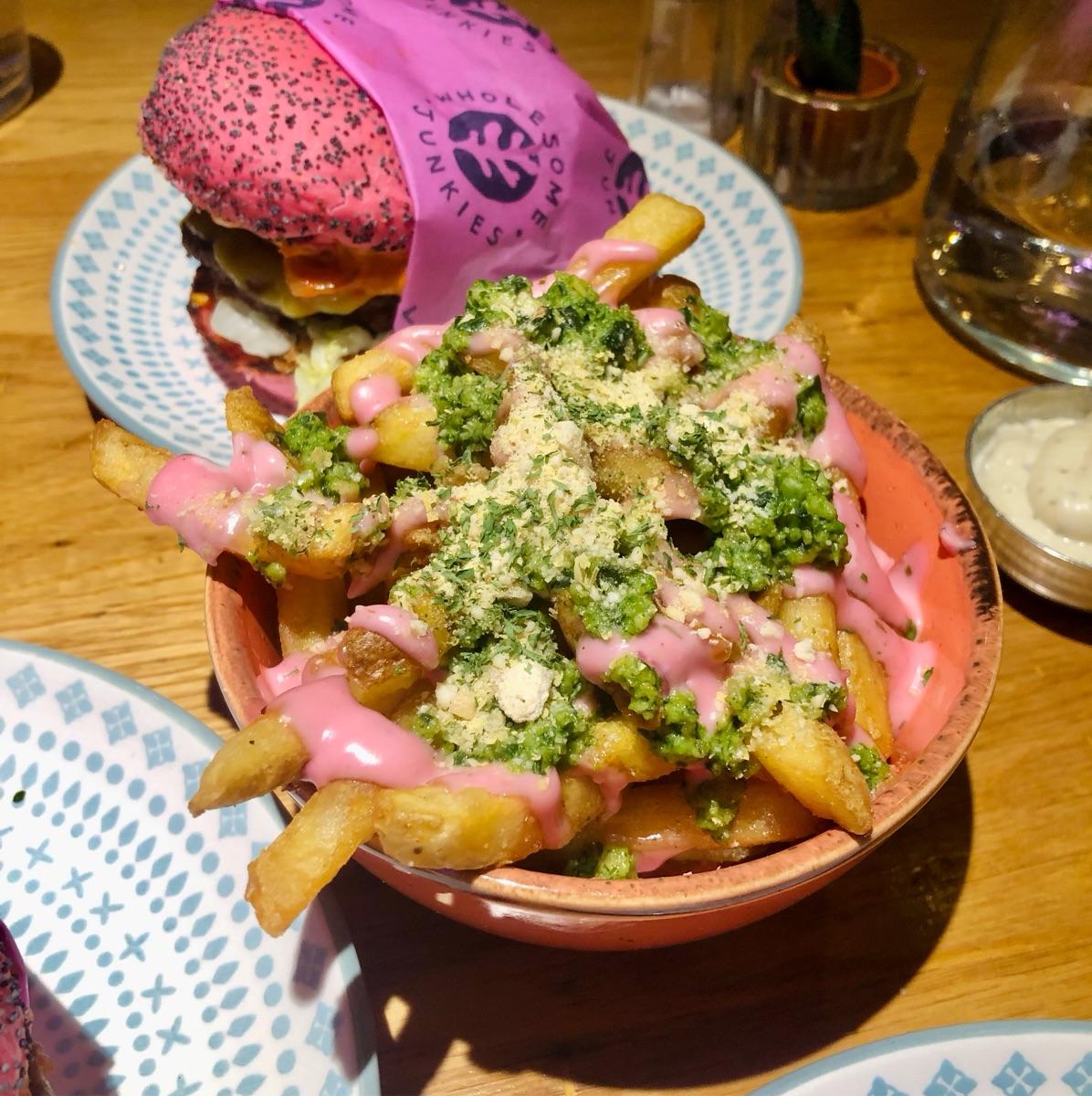 These were one of the Valentine’s specials; lemon pesto, ‘Parmesan’ shavings, pickled onion pink aioli & some awesome crunchy chips! 🍟