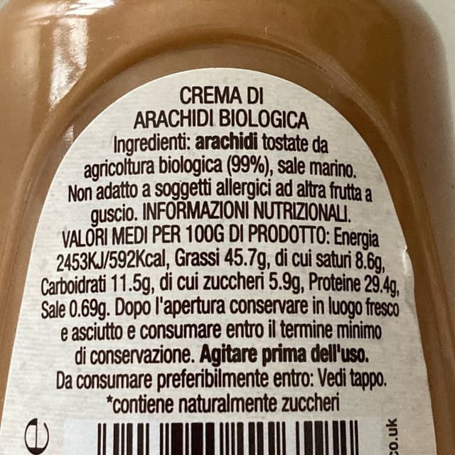 The burro di arachidi 100 % bio is an organic peanut butter made from 100% pure and natural ingredients. It is a creamy and delicious spread that is perfect for those who love the taste of peanuts. This product is free from any added sugars, oils or preservatives, making it a healthy and wholesome choice for your daily snack. The rich and nutty flavor of this peanut butter is sure to satisfy your cravings and provide you with the energy you need to power through your day. Some customers have reported that it is a bit pricey, but they find it worth it for the quality and taste. Overall, the burro di arachidi 100 % bio is a great option for those looking for an organic and natural peanut butter.