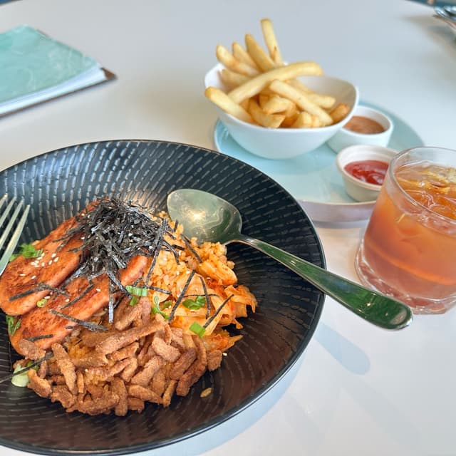 One of the lunch set menu. $18+gst n svc means it cost a alot. But taste wise it is awesome. The kimchi fried rice not too sour from the preserves kimchi which is a good thing. The omni luncheon meats tasted normal though, no wow factor from there.