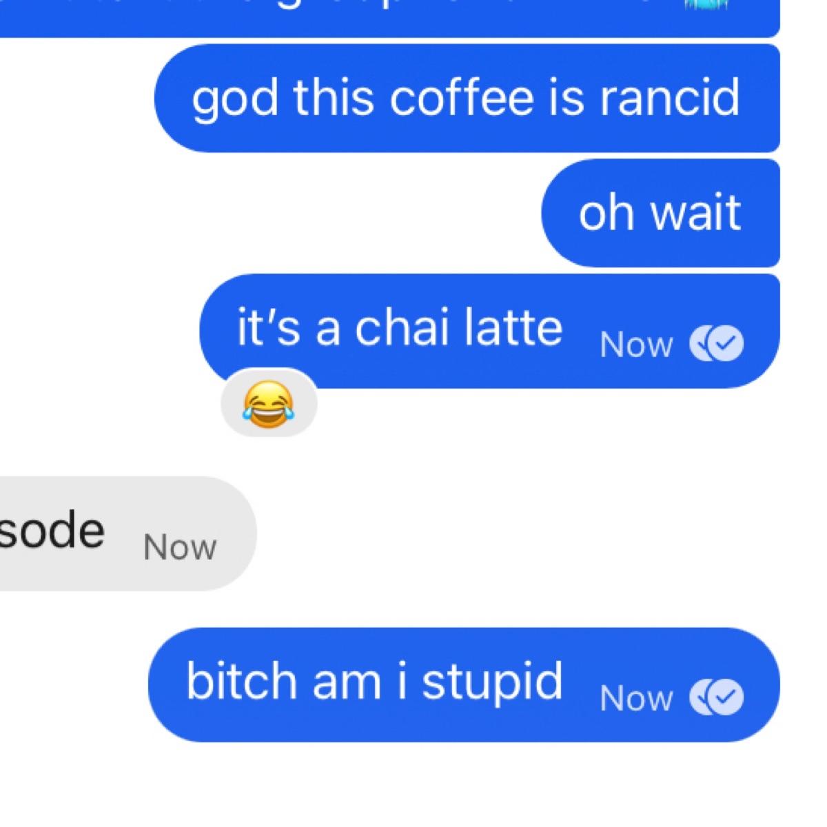 The text message says it all 🤠Well, partially. So it would turn out you can’t pass a #chailatte as a #coffee. Or at least you can even with clear labelling if your customers are off to the shops *without* having had their morning shot of #caffeine 🤦‍♀️ Even as a milky #chai drink though, I think this was a little bit too sweet 🤧 This coming from the diva who drinks Monster Energy for breakfast 💅 You do taste the herbs and all that healthy stuff they try to sell you on the instant grams, but it was nowhere near as spicy enough. Perhaps that’s just the coldness of this #canned drink that softens the blow? I don’t know 🤷‍♀️