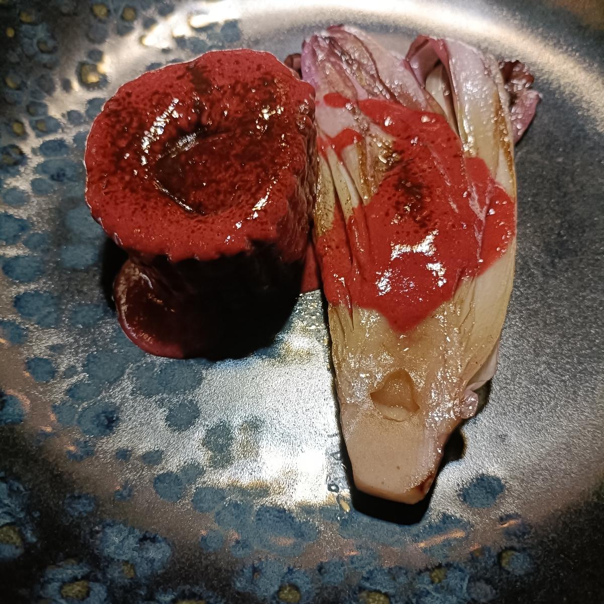 Seitan con lamponi e liquirizia, accompagnato da radicchio di Treviso... Accostamento di gusti pazzesco.. buonissimo davvero