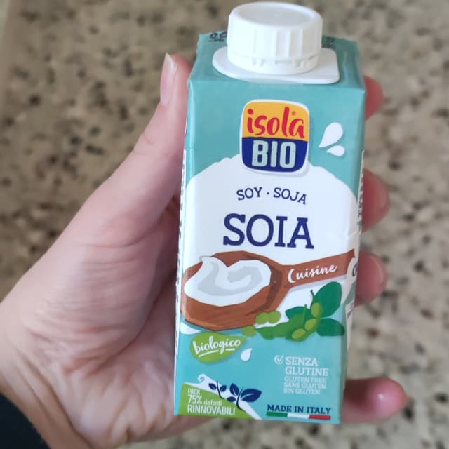 Crema di soia acquistata presso NaturaSì. Ottima per condire la pasta, anche con piselli e funghi . Cremosa e di quantità non ridotta come ricordo essere altre marche!
