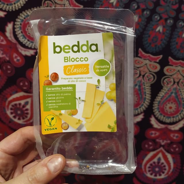 Formaggio in blocco a base di cocco, molto saporito e buono, sa un po' da Emmental e un po' da Asiago. L'ho trovato all'Ipertosano